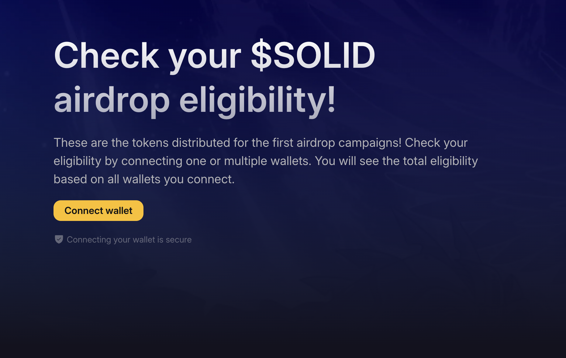 These are the tokens distributed for the first airdrop campaigns! Check your eligibility by connecting one or multiple wallets. You will see the total eligibility based on all wallets you connect.