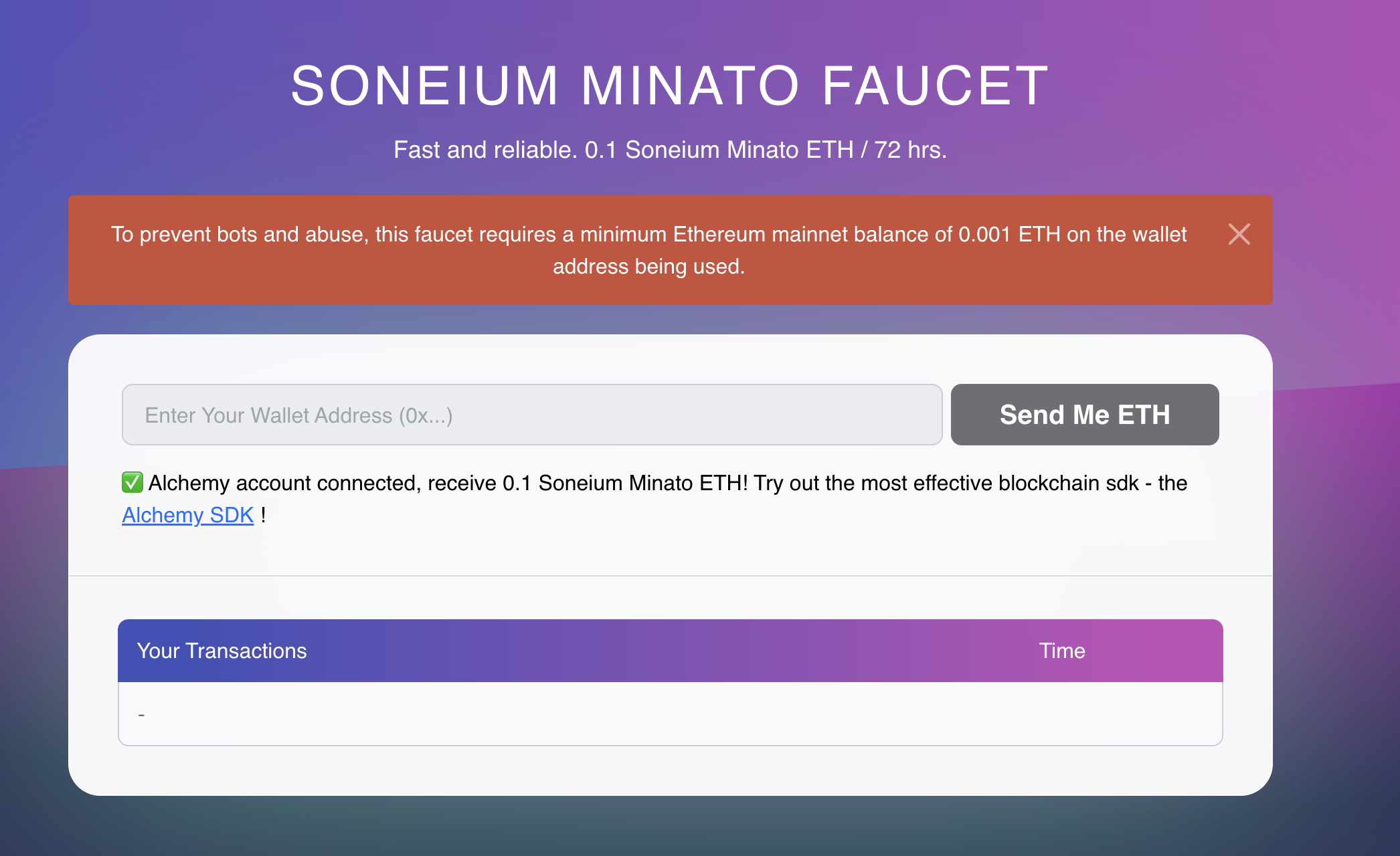 Connect your Gmail account to Alchemy and claim 0.1 Minato ETH.