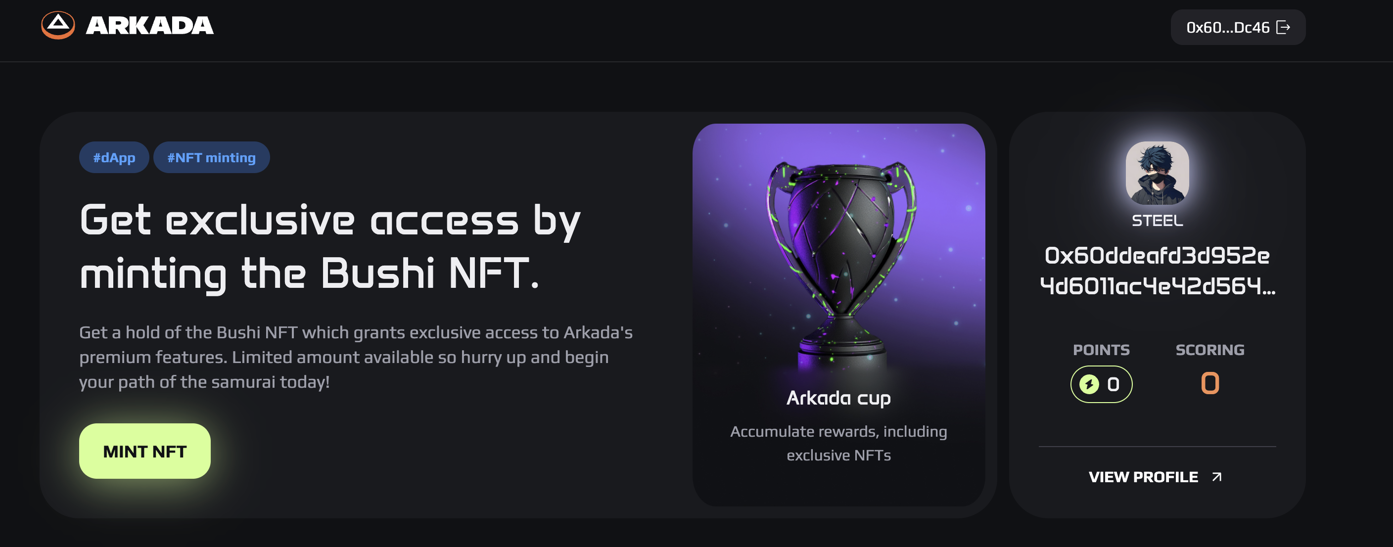 Get a hold of the Bushi NFT which grants exclusive access to Arkada's premium features. Limited amount available so hurry up and begin your path of the samurai today!