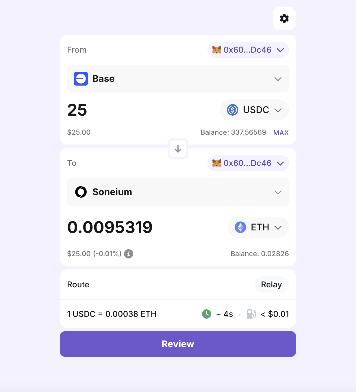 ๐Ÿ‘‰ Select Base as source and Soneium as destination