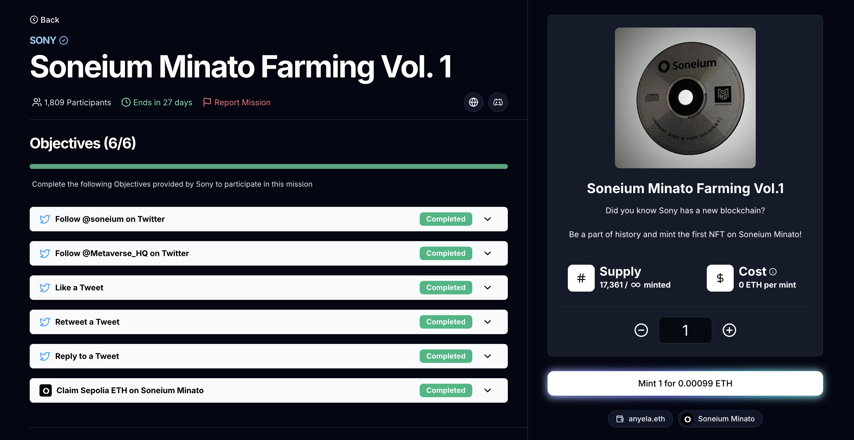 Soneium Minato Farming Vol. 1 : Metaverse HQ