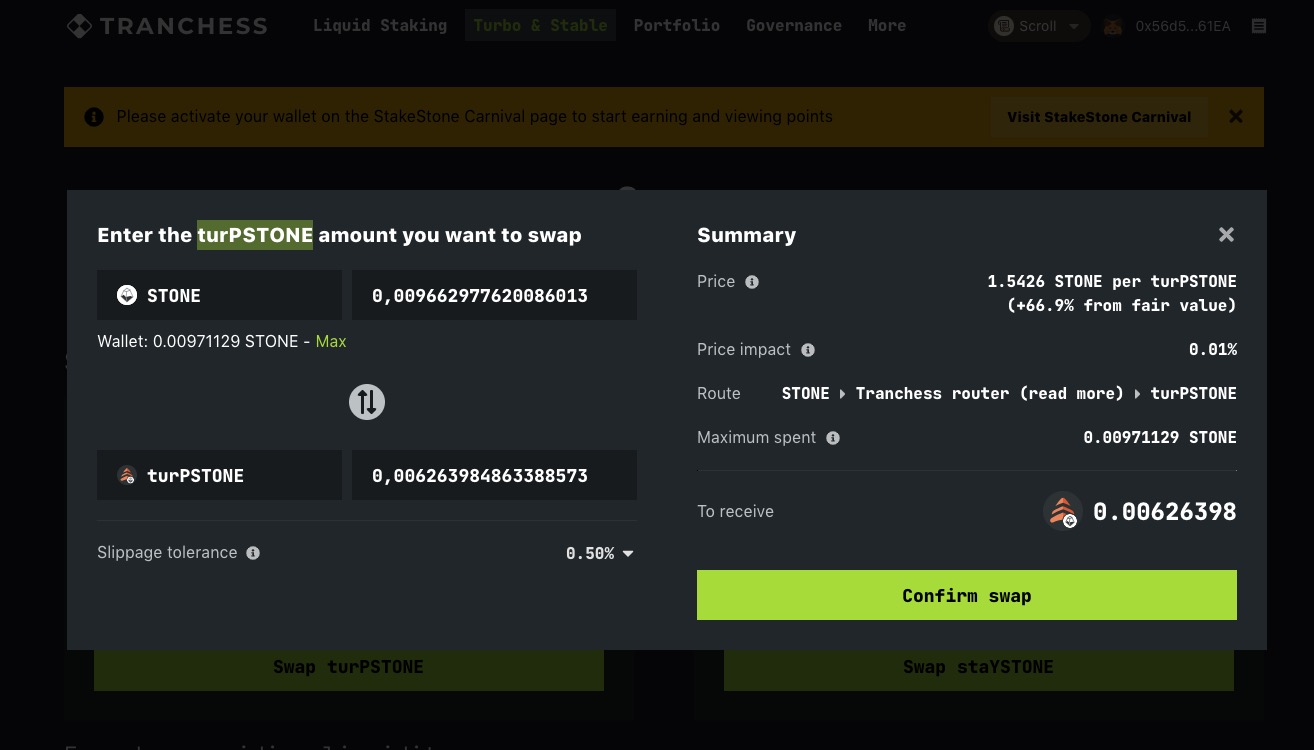 Earn leveraged StakeStone points 👉 Swap STONE to turPSTONE