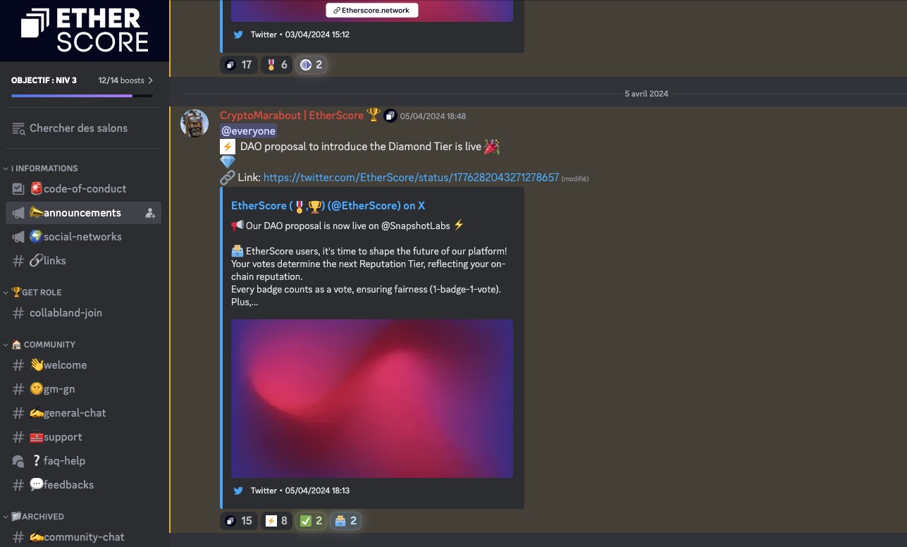 Visit the Snapshot Voting Platform 🔗 Open and Join the Etherscore DAO 🔗 Open