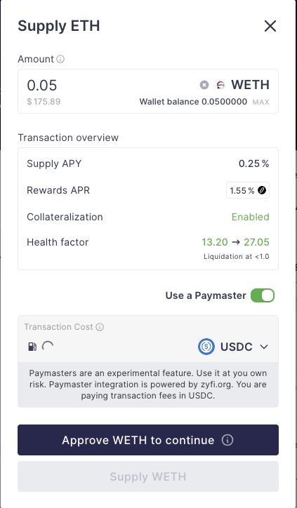 👉 Supply WETH on zkSync