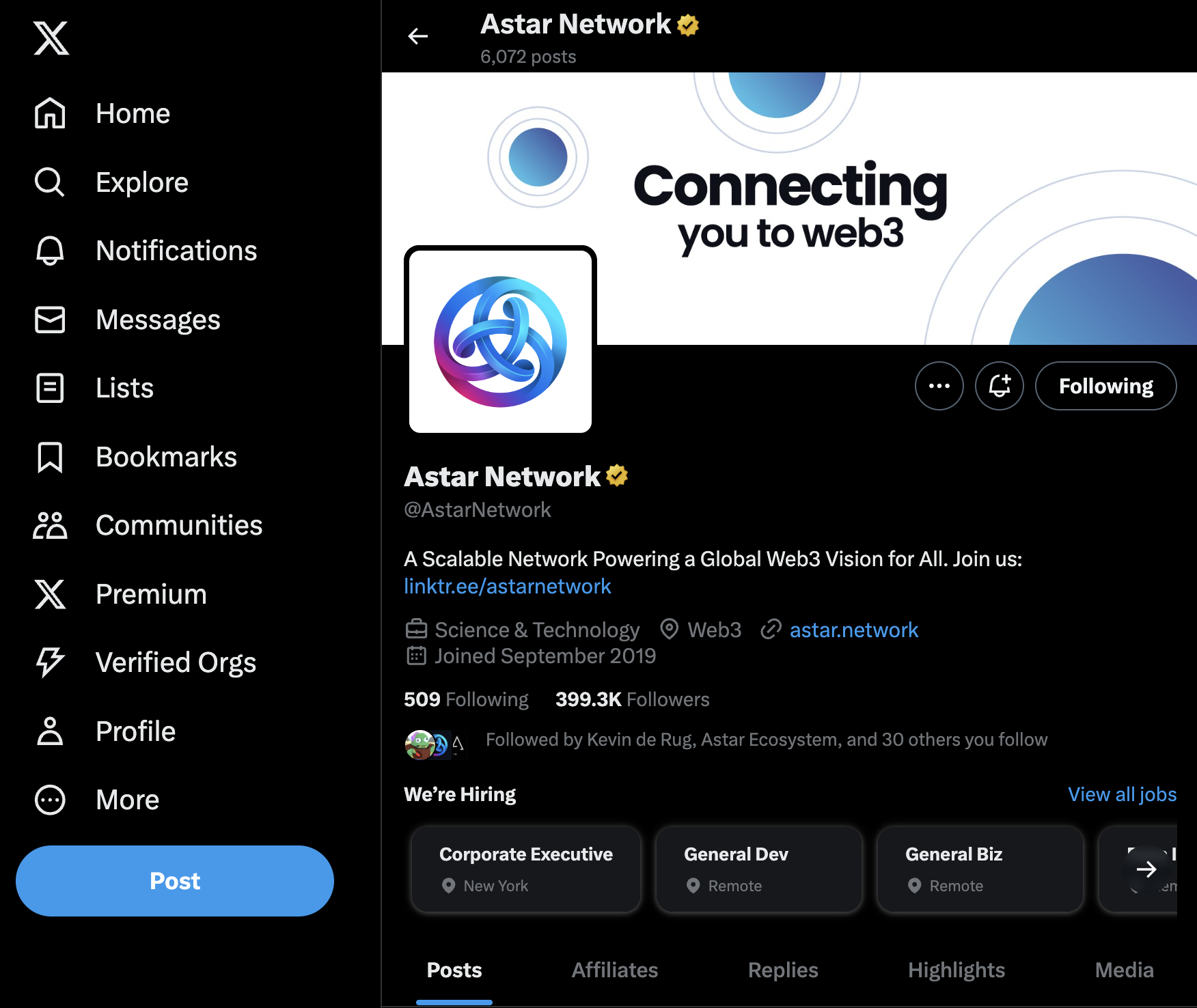 Connect to all available Social Media such as Discord, Twitter, Medium, Telegram, Newsletter, Galxe dedicated page etc...
