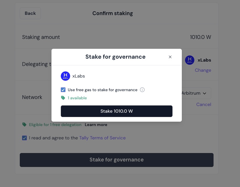 Select one available delegates from the list and enter the amount to Delegate.